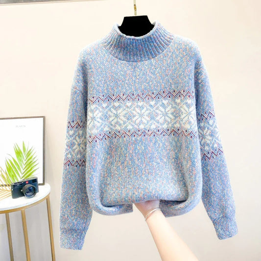 Unisex Kersttrui Met Noors Sneeuwvlokpatroon En Zachte Colkraag