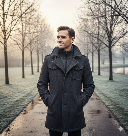 Heren Wol Jas Met Knoopsluiting En Klassieke Kraag