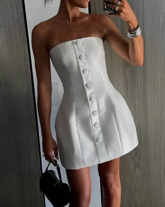 Strapless Mini-Jurk Met Knopen En Corsetlook – Strak, Chic En Onweerstaanbaar