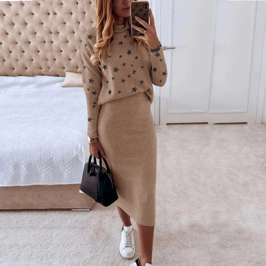 Gebreide Trui-Rok Set Voor Dames – Warme Stof, Comfort Fit & Herfststijl