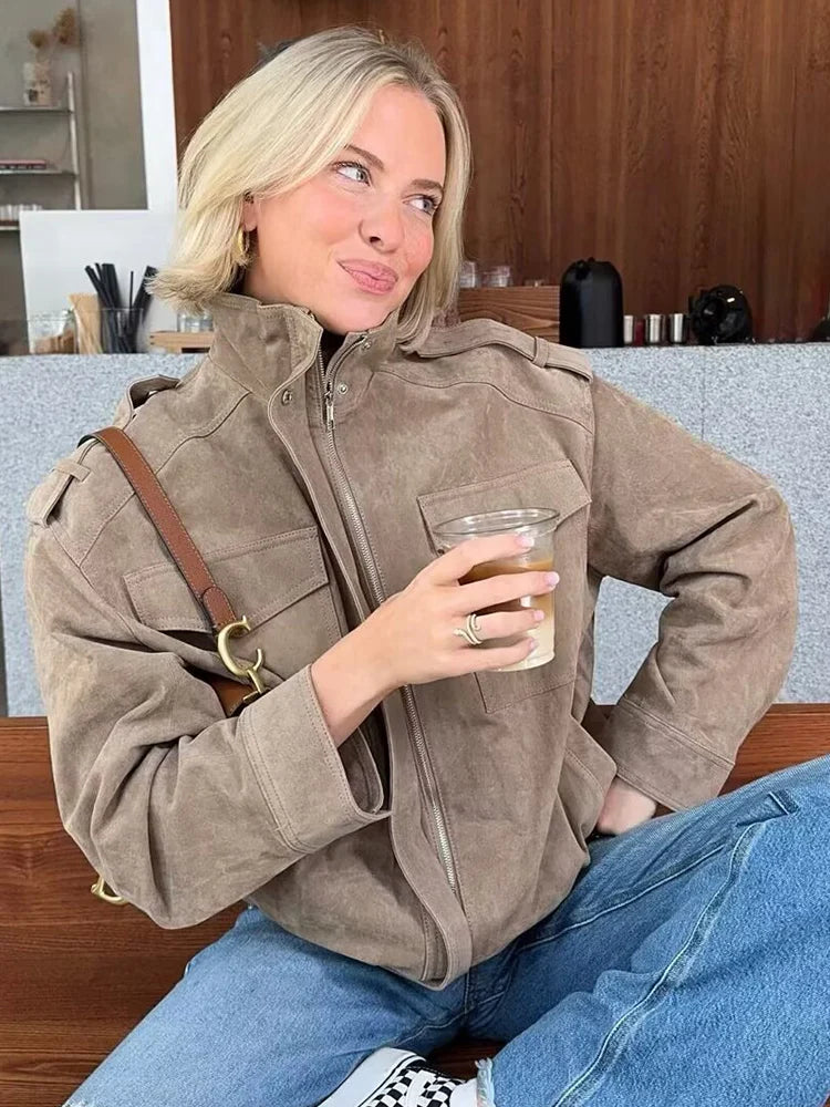 Suède Look Herfst Bomberjack Dames