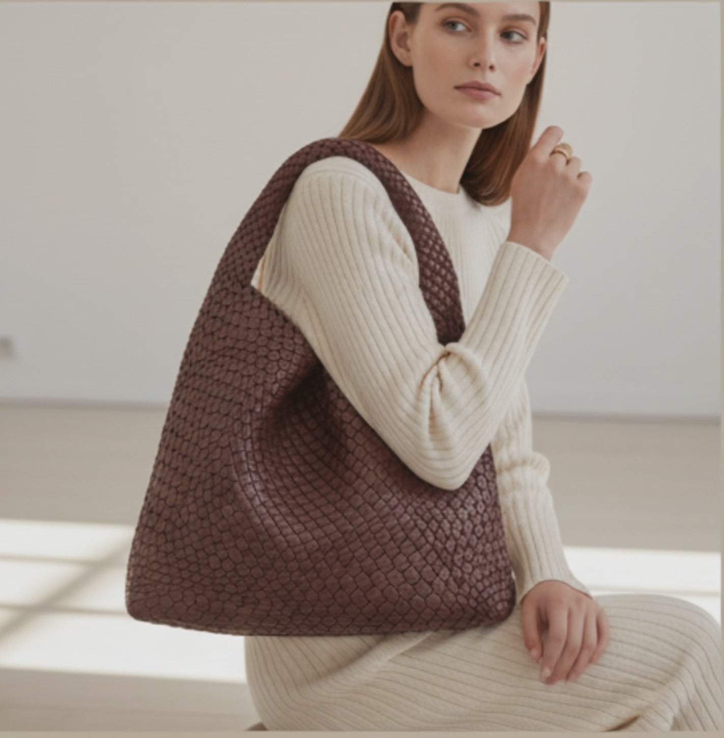 Deze luxe gevlochten schoudertas met bijpassende pouch is een perfecte mix van stijl en functionaliteit. Het grote hobo-model is ruim genoeg voor al je dagelijkse essentials, terwijl de bijgeleverde pouch ideaal is om belangrijke items zoals je telefoon, sleutels of make-up veilig op te bergen.