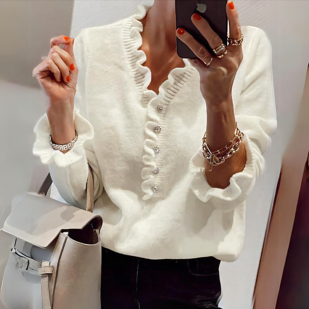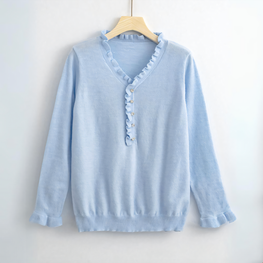 Zachte Trui Met Rufflekraag En Sierknopen...