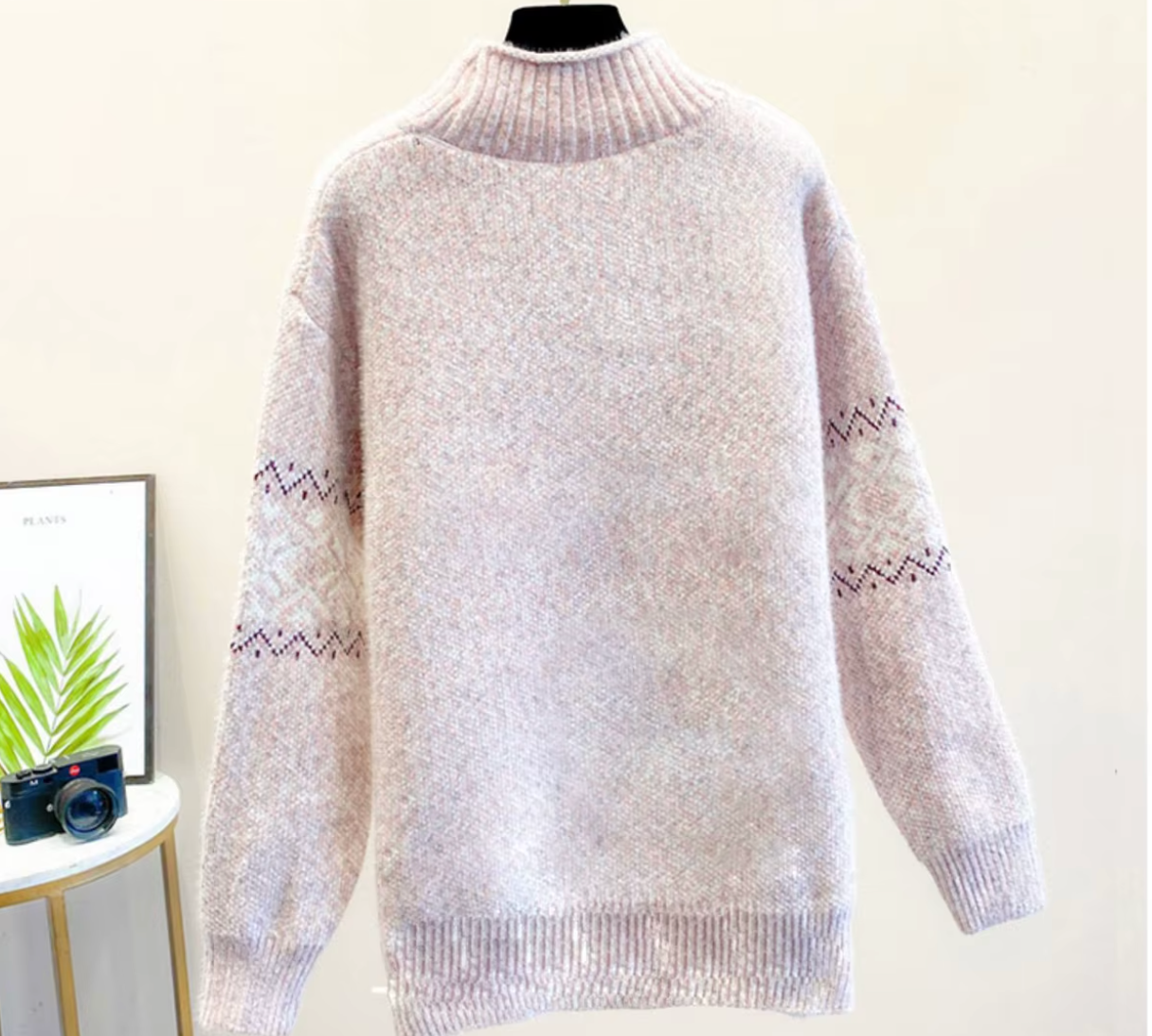 Dames Trui | Hoogsluitende Kraag met Ingeweven Motief